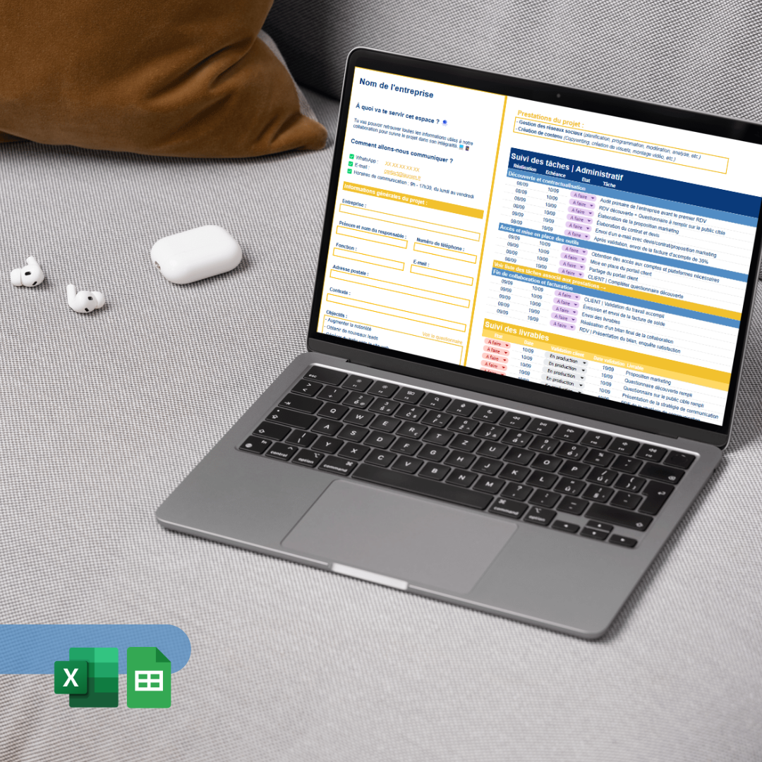 Gagne du temps : organise tes projets, suis tes tâches et centralise toutes les informations en quelques clics avec un outil prêt à l’emploi.